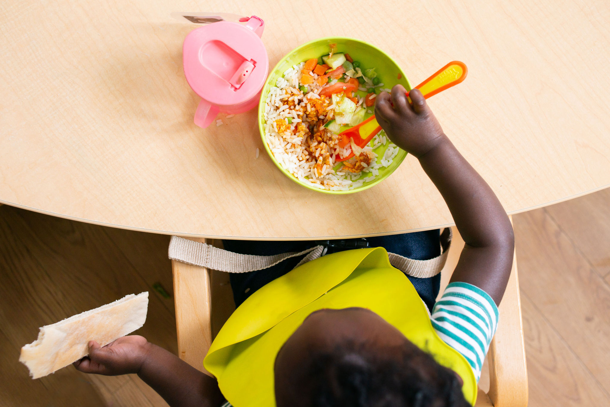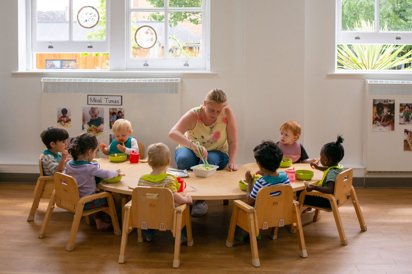 Children eat in a well presented dining room in their house groups. The lunch menu changes termly, to include seasonal produce and variety. Monday has a ‘meat free’ offer; Tuesday, Wednesday and Thursday have a meat offer (both halal and non-halal), as well as vegetarian offer. On Fridays children can choose either vegetarian or fish and chips!
