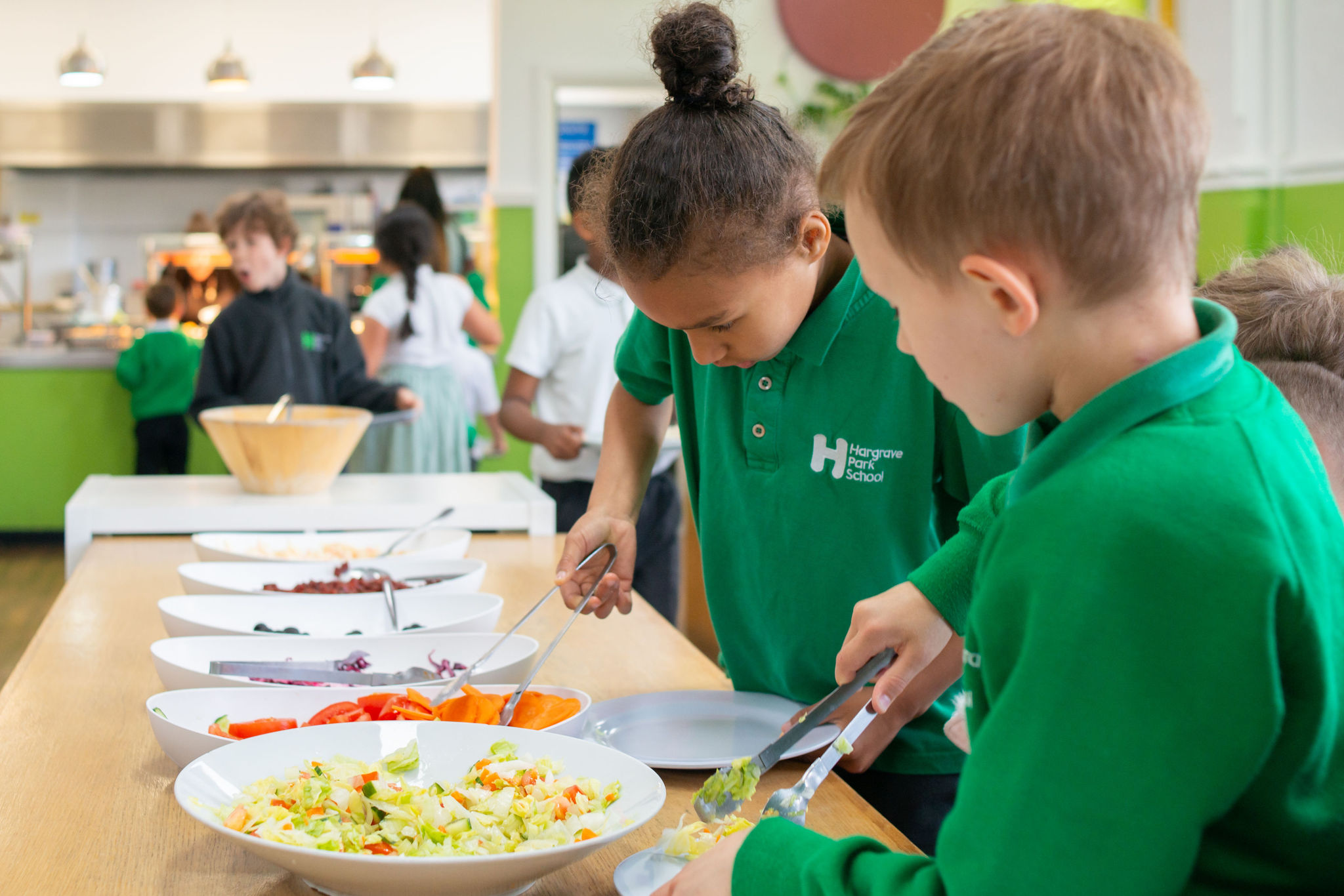 Every day children can help themselves to a variety of salads at the salad bar. Fresh bread is baked on site every day. Eating in houses supports siblings to eat together and gives a chance to meet with friends across the school.